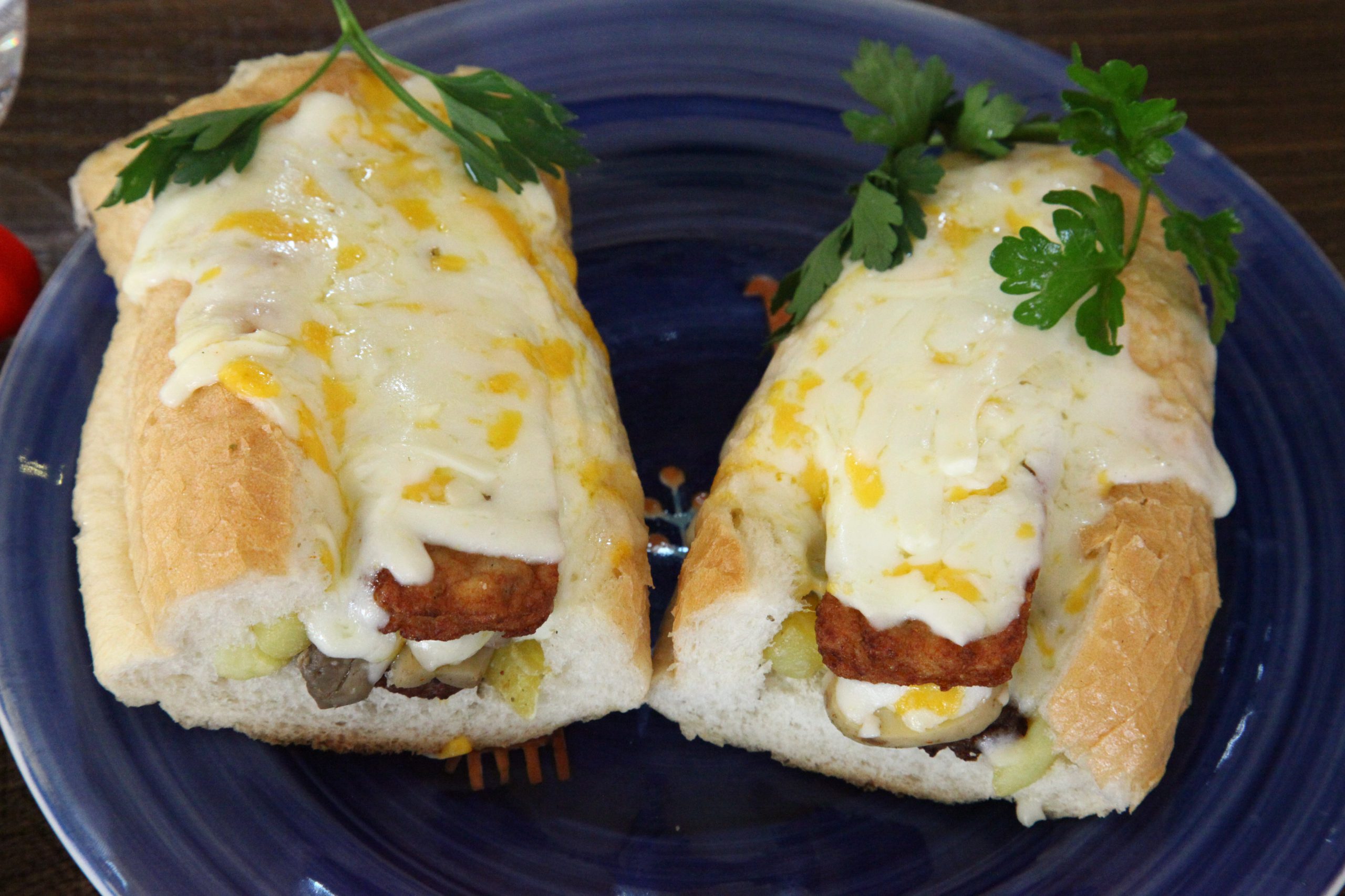 مرغ ، میت لوف ، قارچ ، سیب زمینی ، پنیر ، نان