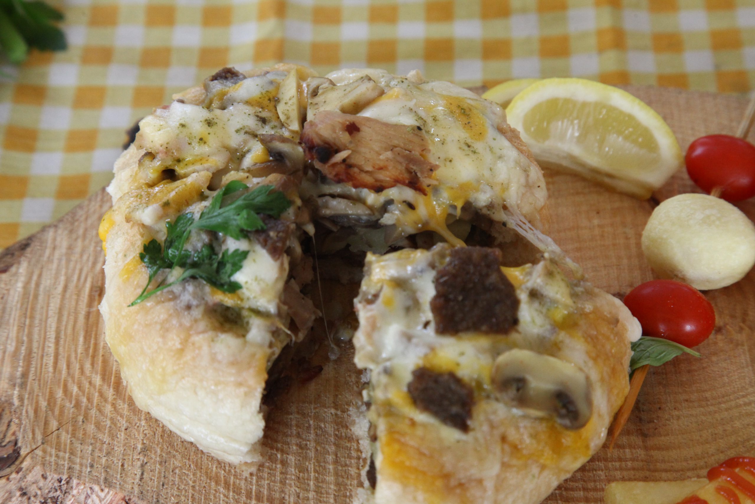 گوشت ، مرغ ، قارچ ، ،سیب زمینی ، پنیر ، نان