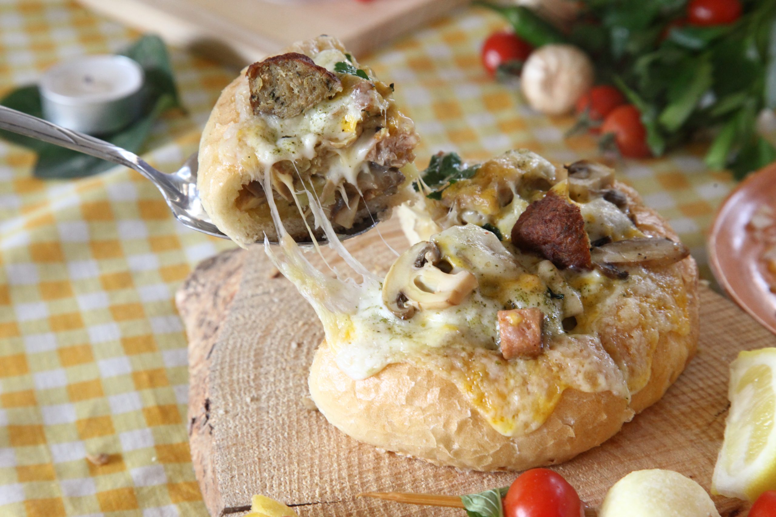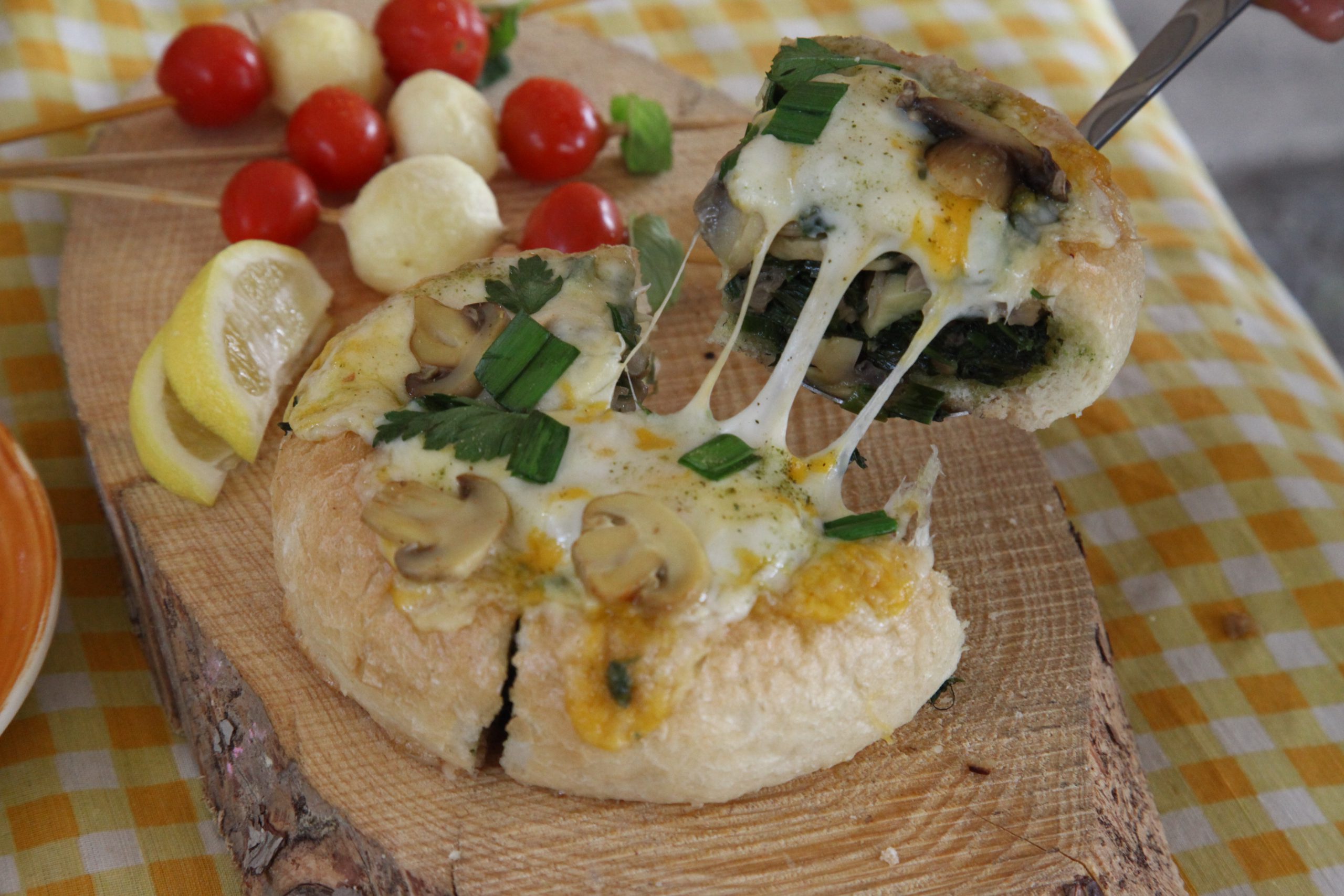 سبزی های مختلف و معطر،قارچ،پنیر،نان